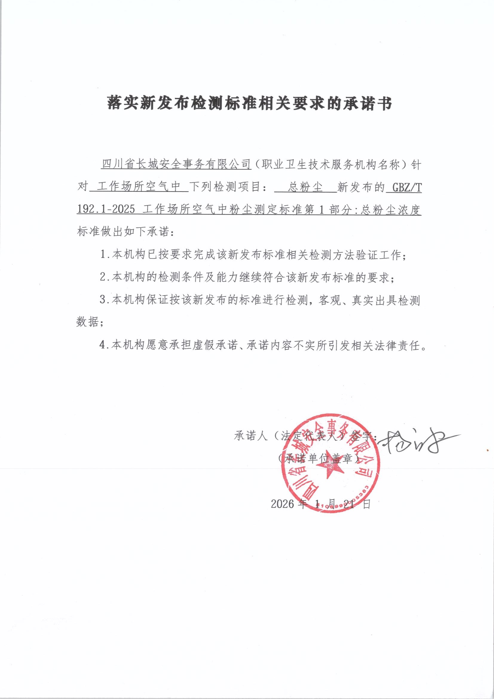 落实新发布检测标准相关要求的承诺书-总粉尘